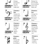 After they duplicate the short piece, encourage students to change up their score by following the suggestions on the Choose and Change Cards. (Download the PDF here, consider laminating and cutting the cards to make a small deck.) The cards ask students to choose a line, measure, or pitch and then change something. Choices give students ownership and “permission” to explore. The suggestions on the cards test students’ comprehension of theory concepts like pitch recognition, rhythmic notation, modes, and much more. This really is a two-for-one assignment!