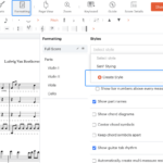 To create a Custom Style, first choose all of your preferred General, Sizing, Text, and Page Setup settings for that style within the “Formatting” panel. You can then select “Create Style” to save your settings and apply them to other scores.